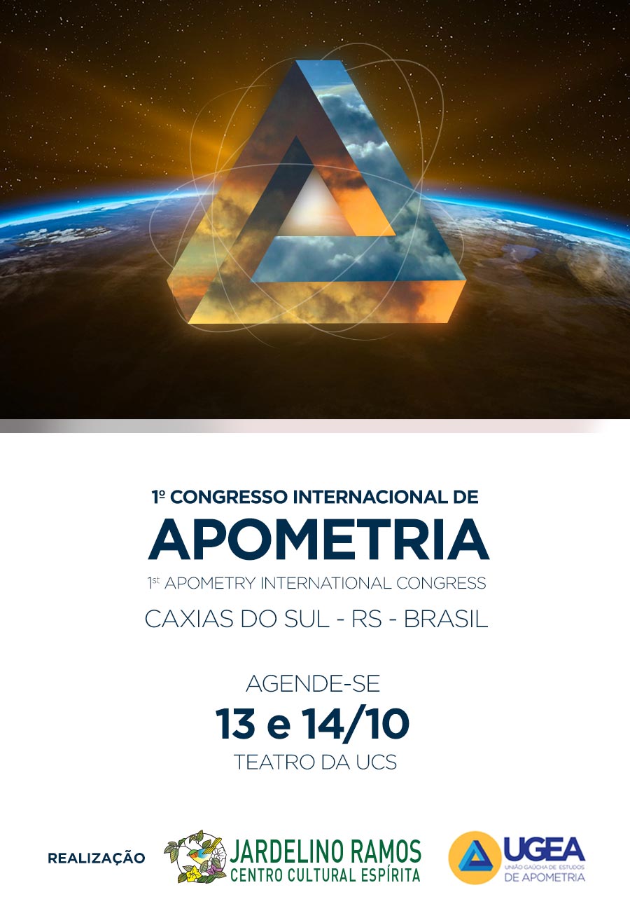 O 1º Congresso Internacional de Apometria de 2017 foi um marco na história da apometria no Brasil. Além de trazer painelistas de diversas regiões do Brasil e do exterior, o 1º CIApometria reuniu mais de 700 pessoas em 3 dias de evento, reunindo importante conteúdo para futuras publicações e pesquisa. Por sua ampla capacidade e conforto, o Teatro da UCS foi o palco escolhido para o evento. Além de salas de apoio, estacionamento, ar condicionado, acesso a portadores de necessidades especiais, o Teatro da UCS ofereceu ampla gama de serviço de alimentação a poucos metros de distância. O 1º CIApometria foi realizado através da comunhão de esforços a UGEA – União Gaúcha de Estudos Apométricos e do Centro Cultural Espírita Jardelino Ramos de Caxias do Sul-RS.